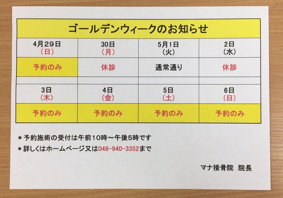 ゴールデンウィークのお知らせ